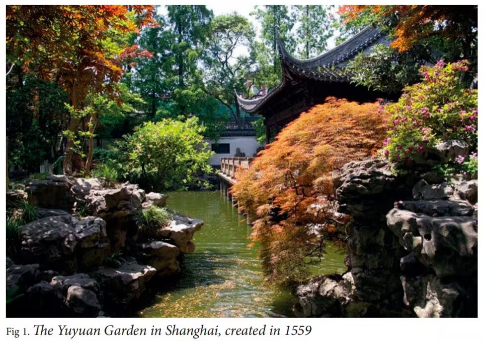 这种理念的视觉化呈现在许多中国园林中。例如,上海的豫园(图1),包含了中国古典园林的全部要素:水体、建筑、植被与山石,体现了对自然的深切尊重。它可被视为一个“微观世界”,映射着宏大的“宇宙”,启发人类去追求与自然及世界的和谐共生。
