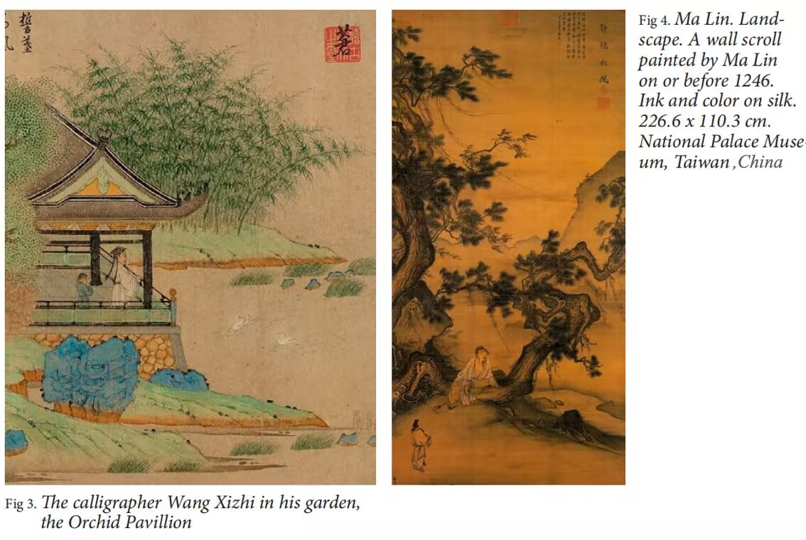 书法家王羲之在他的兰亭(图3)中曾召集一群著名诗人,大家依溪而坐,将酒杯放入水流之中,若酒杯在某位诗人身旁停下,他便须饮酒并赋诗。在这座园林中,我们得以看到中国园林典型的诗意与自然的结合。