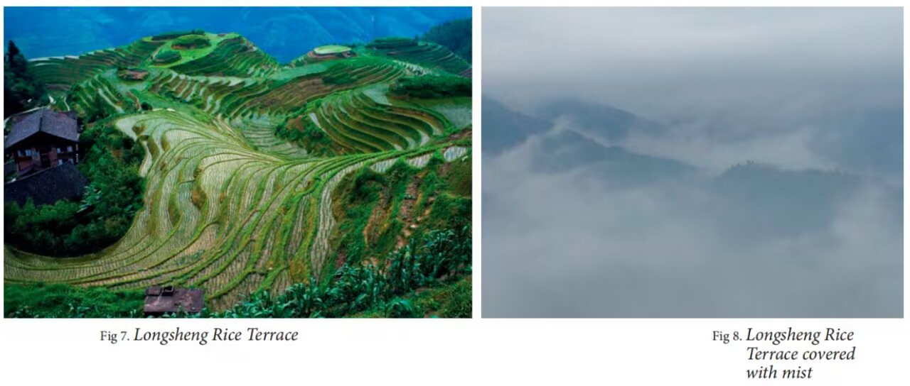 2014年11月,王彤与Pontus Kjerrman及其他丹麦艺术家一同再次前往中国南部,在厦门举办了一场由丹麦与瑞典艺术家参与的展览。这次访问也提供了新的机会,去考察中国南方山水的其他迷人特质。我们尤其为独特的龙脊梯田(约650年前建成)(图7)所折服。它因地形酷似龙鳞与龙脊而得名。其曲折复杂的线条也让人联想到现代绘画的迷宫式图案。丹麦艺术家Tine Jacobsen拍摄了一幅令人惊叹的照片:云雾笼罩的梯田几乎宛如一幅中国山水画(图8)。