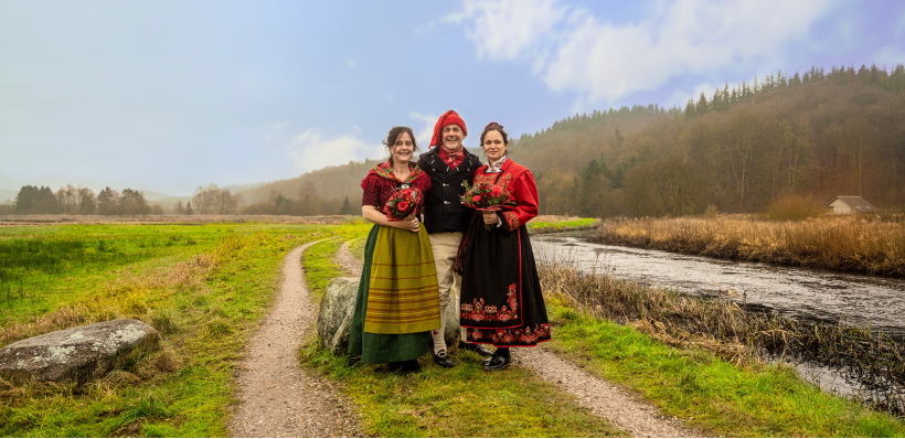《北境织影 The Fabric of Belonging》正是在这一语境下展开的艺术探索,是一场以织物为语言、以身体为媒介、以归属为命题的跨文化艺术实践。自2012年起,三位北欧艺术家Nina Maria Kleivan(挪威)、Hjördis Haack(丹麦法罗群岛)与Bent Hedeby Sorensen(丹麦)以持续十多年的共同创作,将民族服饰从历史的橱窗中取出,重新穿入当代的公共空间。它们不再只是仪式中的符号,而是成为行为、影像与装置中的活性文本,幽默而深刻地诘问:何为我?何为“我们”?